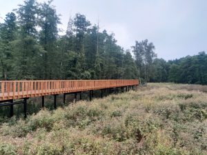 Czyli drewniane pomosty, które łączą Dąbrówkę z nowo powstałą betonową ścieżką wzdłuż pustyni. Z punktu widokowego Dąbrówka do samych kładek dostaniecie się 2,5 km spacerem. Z Róży wiatrów, betonową ścieżką 3,5 km.